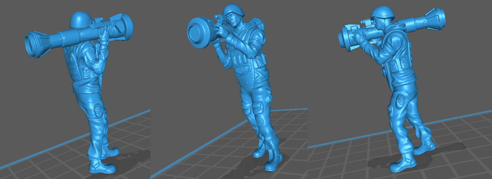 This 3D-printable .STL file represents a Ukrainian soldier (with distinctive trident patch) firing an NLAW, and was designed by Ukrainian sculptor Sergei Sirik (https://www.artstation.com/sergei_sirik) to raise funds for the defense of Ukraine. As you can see in the example pictures, the sculpt scales well with figures from 54mm scale all the way down to 20mm scale (and will likely go even smaller just fine).